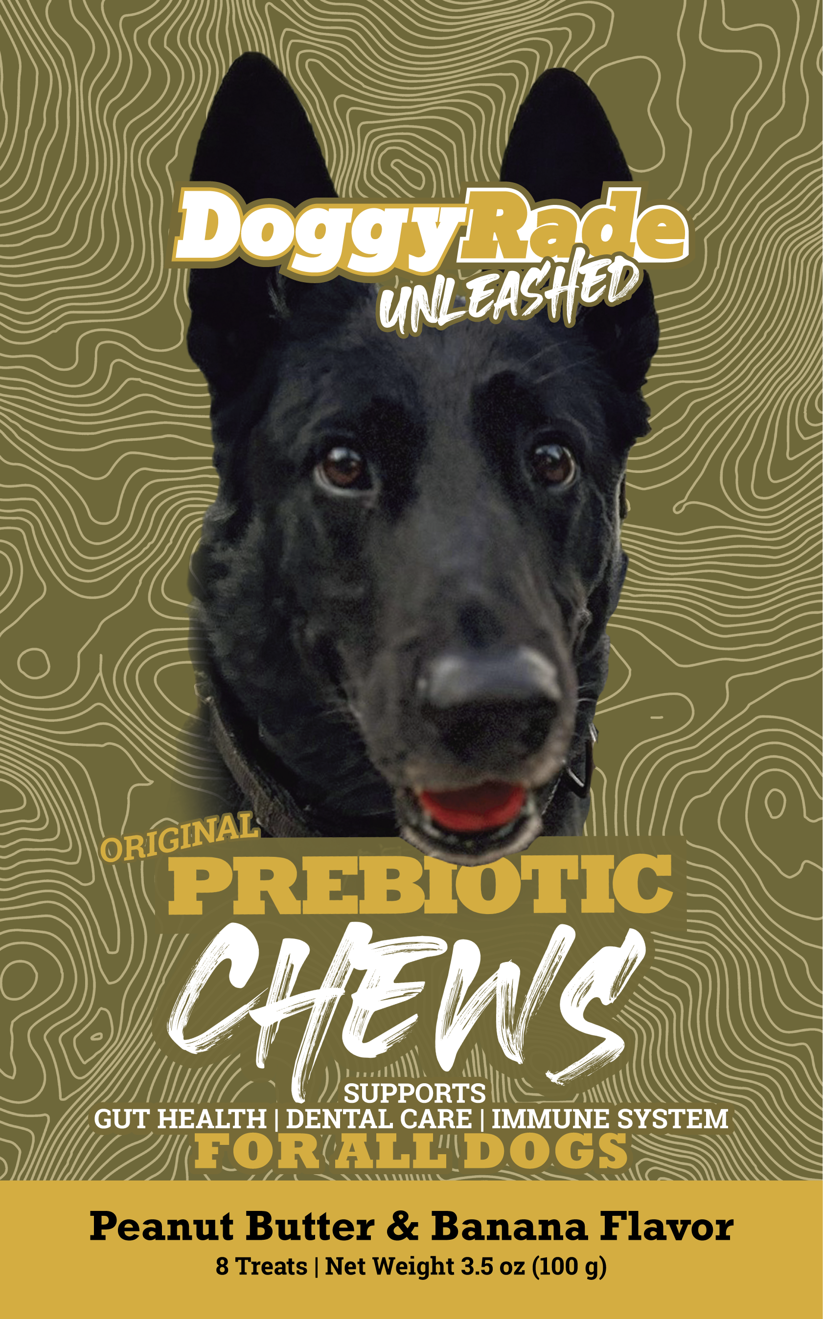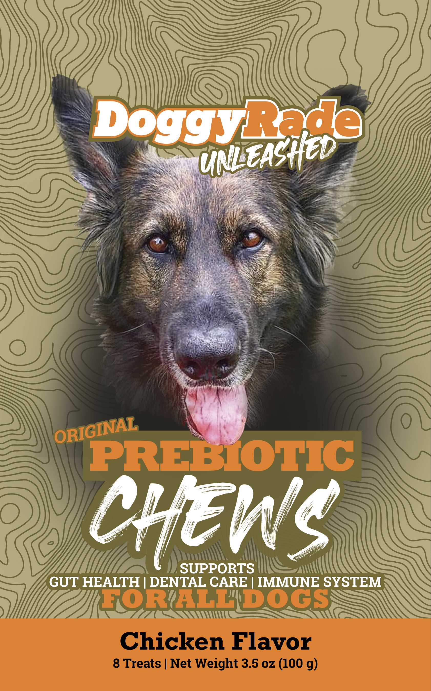 DoggyRade Unleashed Prebiotic Chews were formulated by veterinarians specifically for your dog. Our tasty prebiotic, chicken and peanut butter banana flavors chew, helps to support your dog's immune and intestinal health. It contains natural fiber prebiotics to promote the growth of beneficial bacteria in the gut.
